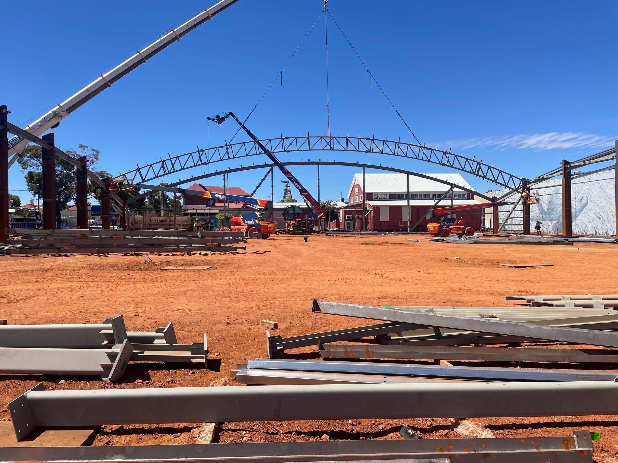 Rigsafe was engaged to support the delivery of a community pavilion in Kalgoorlie, providing an integrated solution across planning, equipment hire, crane operations, rigging, and site installation. Operating in a regional environment, our team carefully coordinated each stage of the works to ensure the structure was installed safely, efficiently, and in line with programme requirements. From early planning through to final placement, our practical, no hassle approach ensured a streamlined installation and a quality outcome for the client and local community.